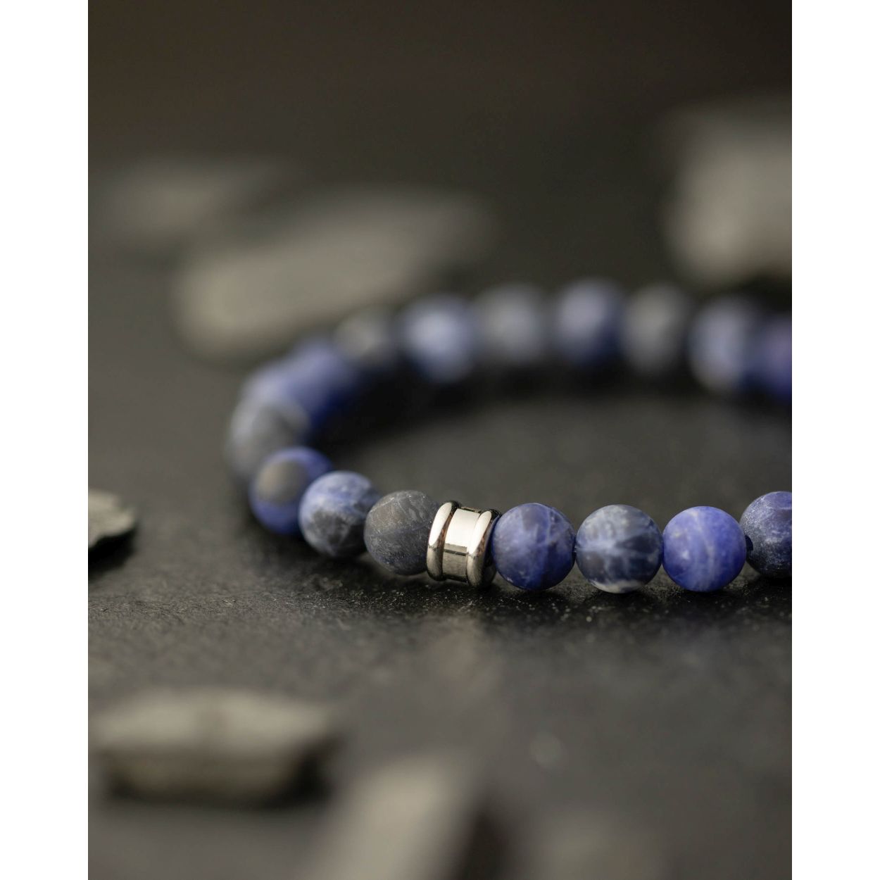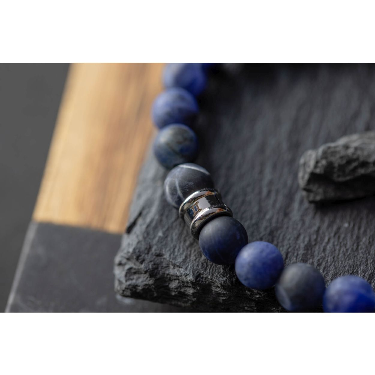 Dit is een Gemini Alpha Mat Blue S� mannenarmband. Deze heeft een sodalite steen.