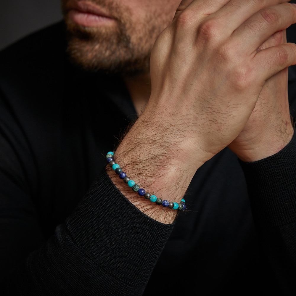 Armband van het merk Rebel & Rose. De armband heeft een hoogwaardige elastische stretch koord, met 6mm van Art. Turquoise, Ryoliet, Sodaliet, Hematiet.