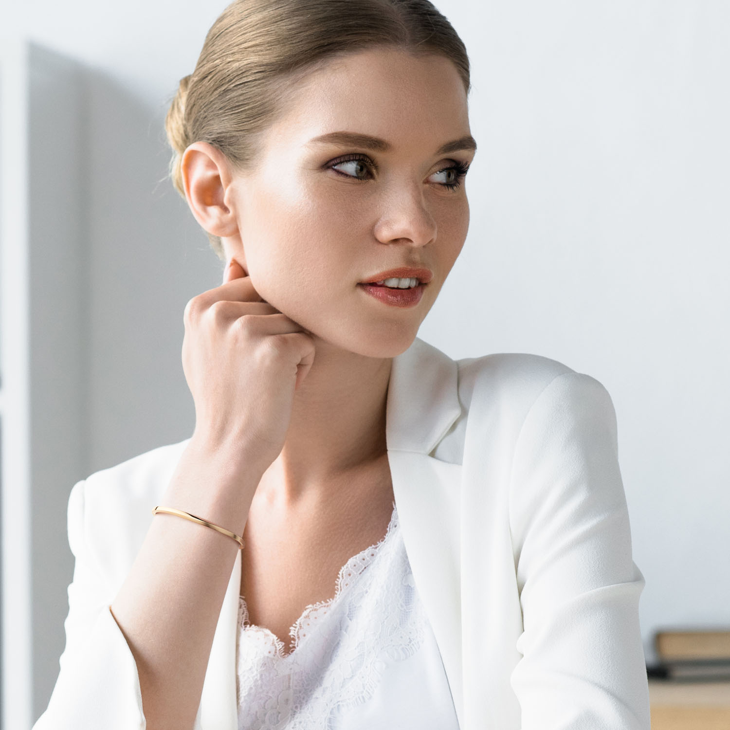 Deze unieke titanium bangle armband van Boccia Titanium is een mooie toevoeging aan je sieradencollectie! Wat deze goudkleurige titanium armband uniek maakt, is dat hij aan de bovenkant een lichte draai maakt. Een chique geheel. De doorsnee is 60mm. Combineer de armband met bijpassende sieraden voor een complete look.