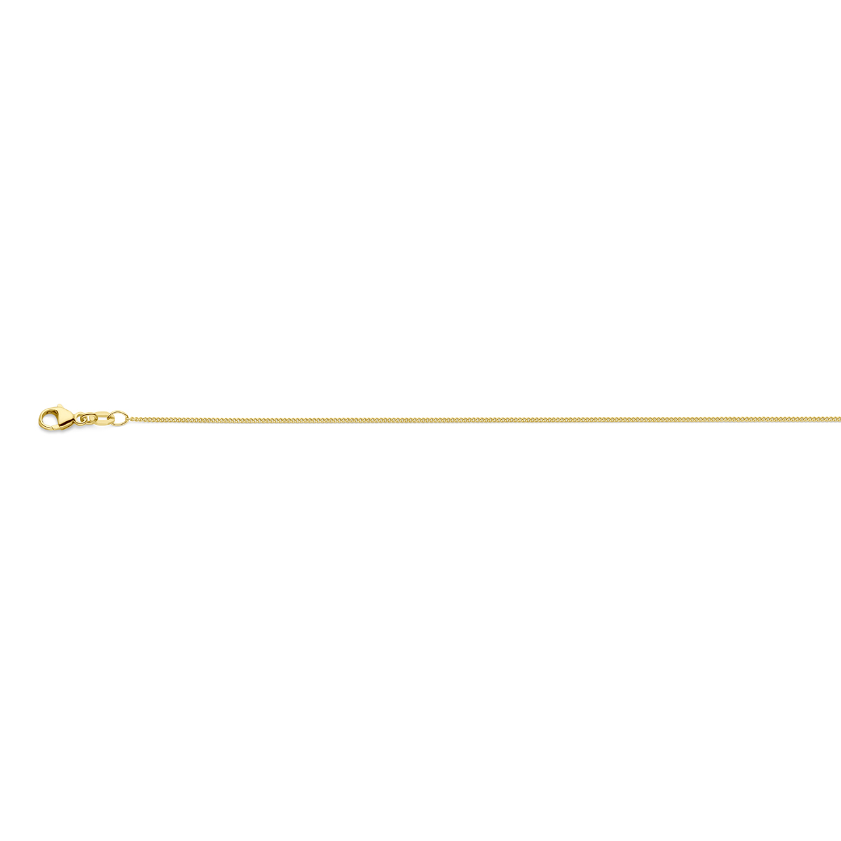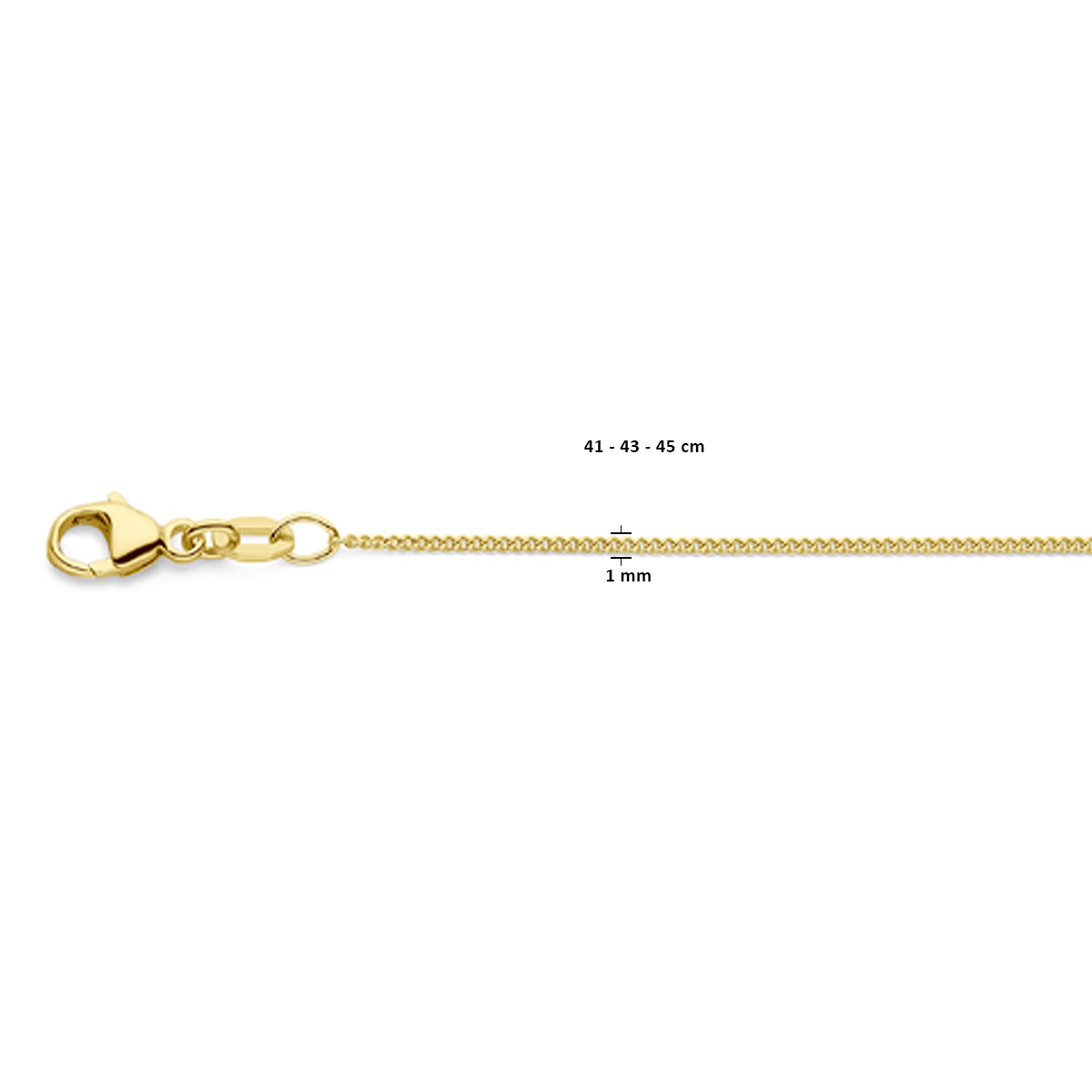 18k Geelgouden collier met een gourmette schakel en draaglengtes van 41, 43 en 45cm. De schakelbreedte is 1.0mm. Uitgevoerd met een karabijn sluiting.