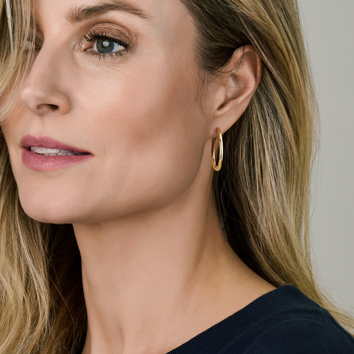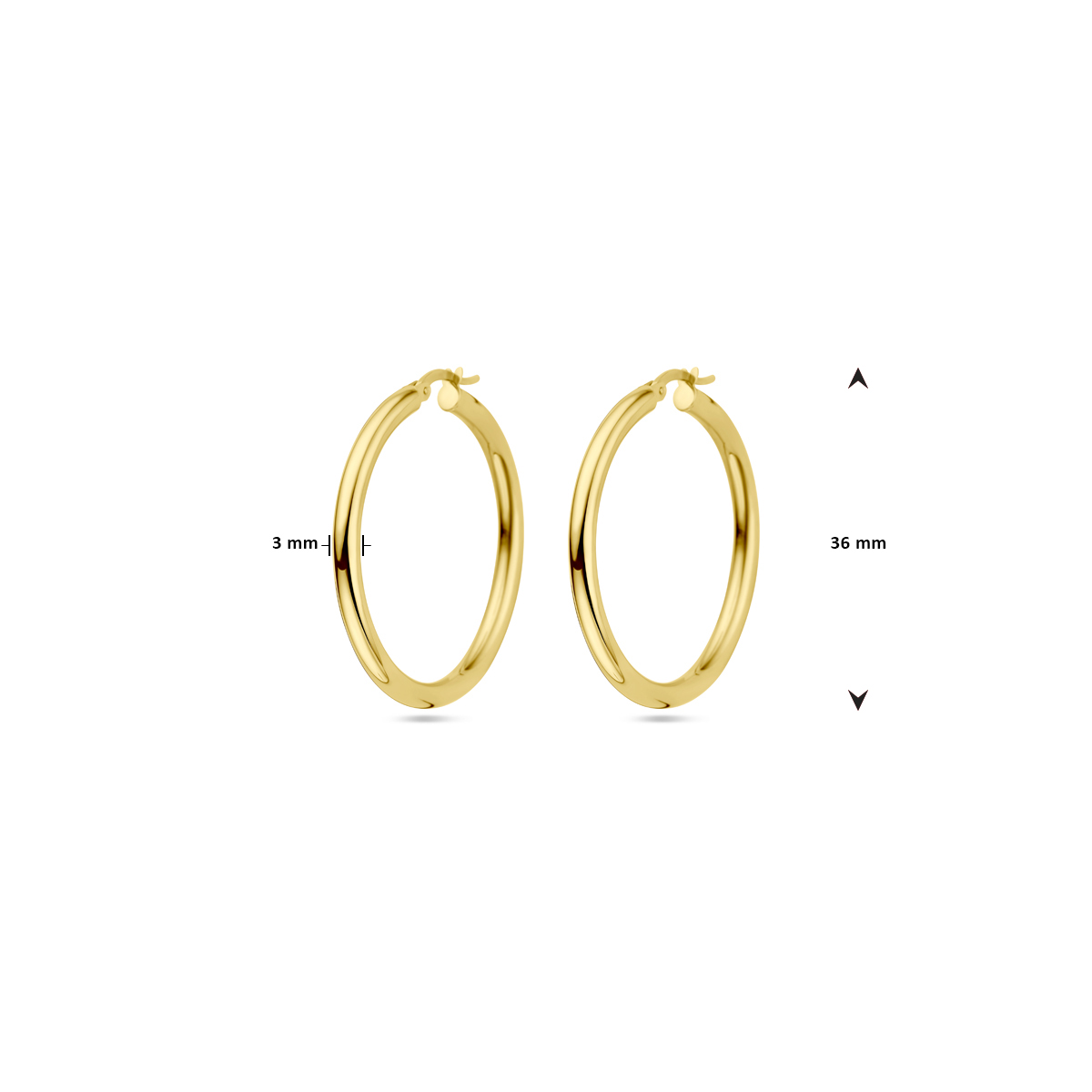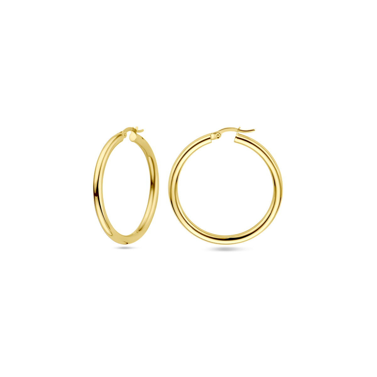 Geelgouden oorringen met een ronde buis en een hefboom-sluiting.