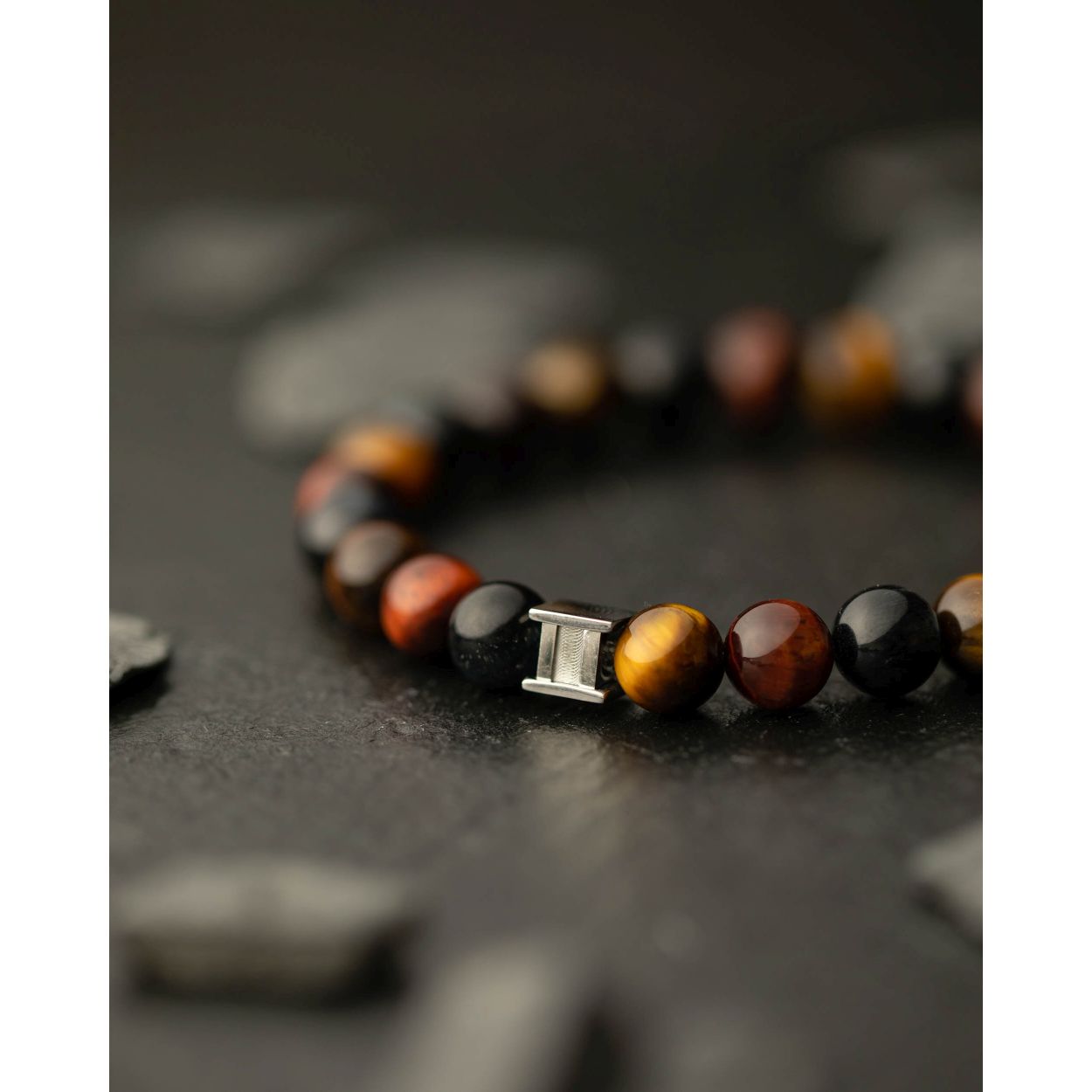 Dit is een Gemini Gem 3Colours M mannenarmband. Deze heeft een tiger eye steen.