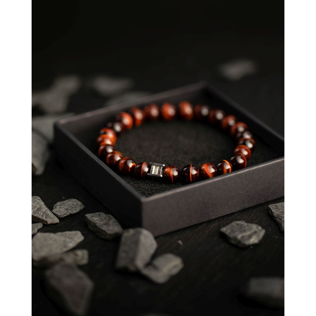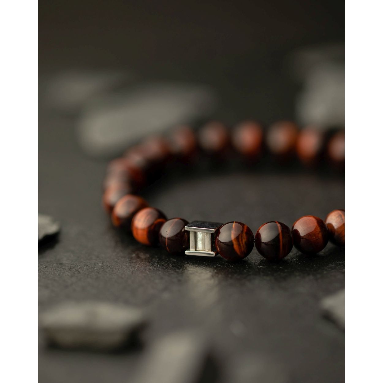 Dit is een Gemini Gem Bordeaux S mannenarmband. Deze heeft een tiger eye steen.