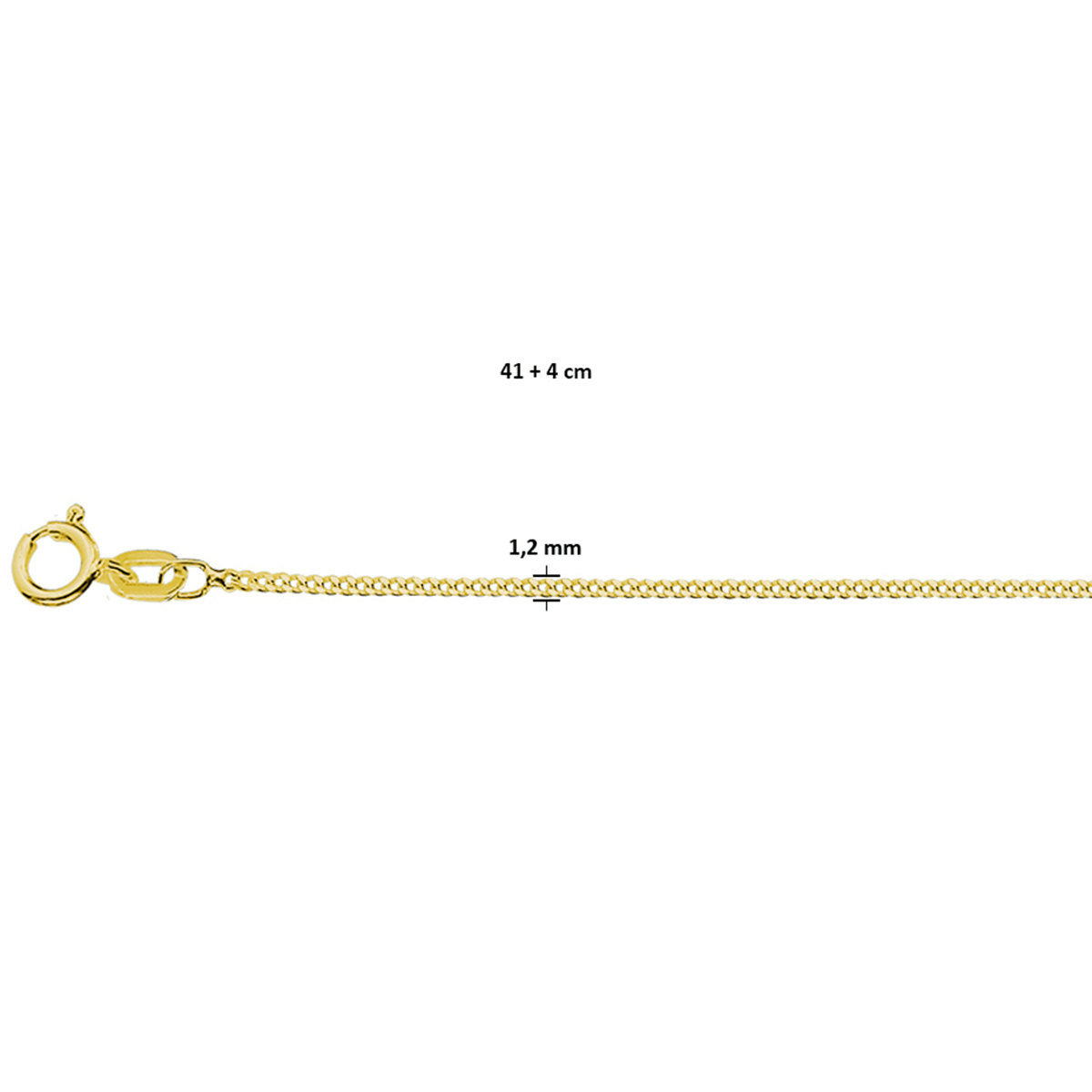 Verguld op 925 zilveren gourmette collier met een schakelbreedte van 1.2mm. Het collier heeft een draaglengte van 41cm en een extensie van 4cm. Geen garantie op plating.