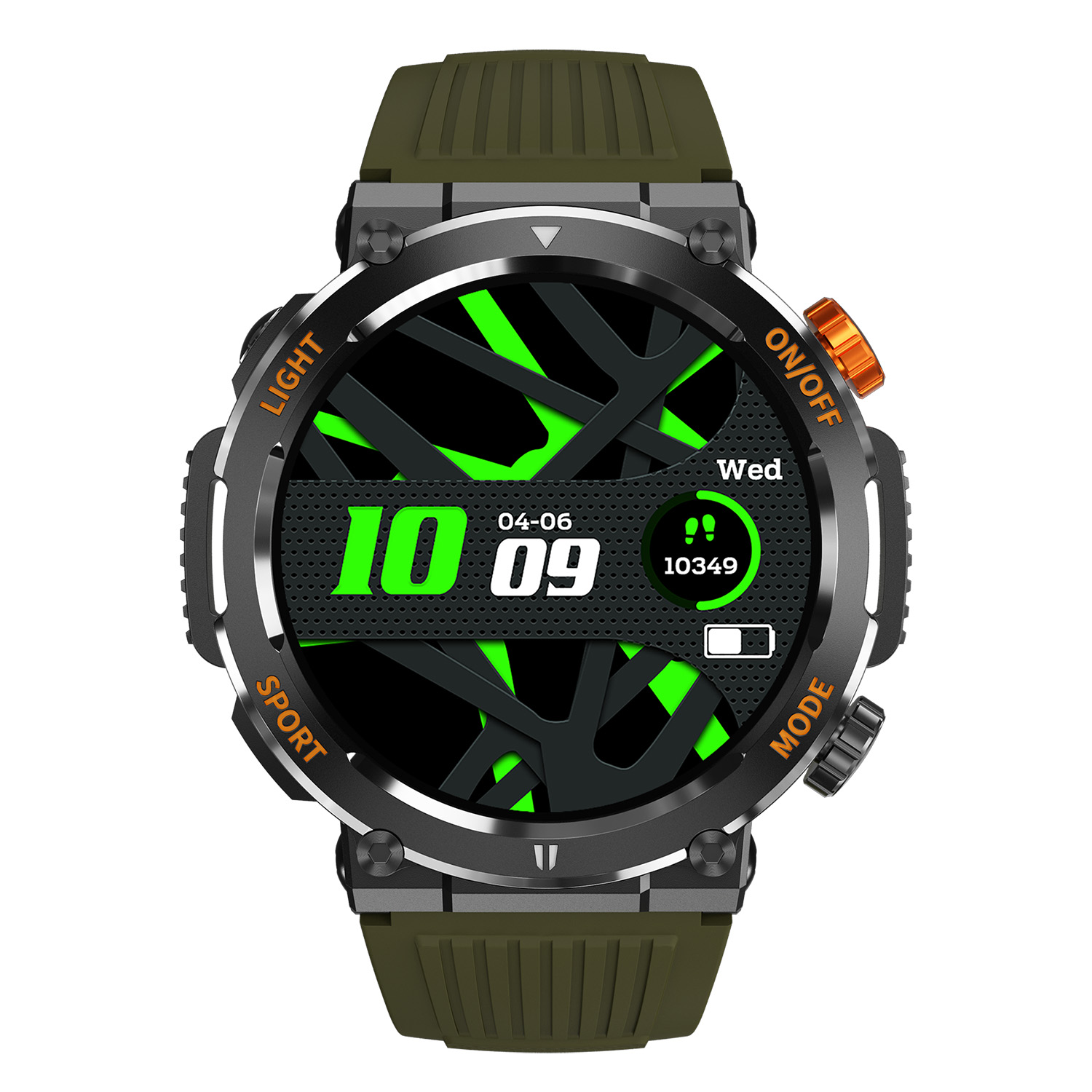 SMARTY2.0 SW077D Smartwatch Alloy Siliconen 48mm Dit Smarty Smartwatch horloge met nr: SW077A is een stap in de toekomst. De zwarte kast is gemaakt van metaal met een gehard glas. Aan de kast zit een groene siliconen band met een gespsluiting. Het ronde horloge heeft een afmeting van 48mm en is spatwaterdicht. In de rand van de kast vallen de rode letters op, evenals de rode drukknop. Deze smartwatch is sportief, stijlvol, maar zeker gebruiksvriendelijk. Om door apps, berichten en tekst te bladeren hoeft je alleen maar op het glas te tikken of de knop te gebruiken. Merk: SMARTY2.0 Smartwatches verbinden je met de wereld. SMARTY2.0 biedt een brede keuze aan vormen en functionaliteiten. Een ronde of rechthoekige smartwatch? Eentje voor de smalle pols? Een ladies watch of een kids watch? SMARTY2.0 heeft het allemaal. De keuze qua functionaliteiten is onuitputtelijk: bluetooth bellen, stappenteller, hartslag- en bloeddrukmeter, meerdere verschillende sporttrackers, menstruatie en ovulatie herinneringen, ingebouwde GPS, vind mijn smartphone en heel veel meer. Maak je eigen keuze. Iedere SMARTY werkt zowel met iOS als met Android en is moeiteloos via een QR-code te koppelen met iedere mobiele telefoon. Misschien wel dé makkelijkste smartwatch voor iedereen. SMARTY2.0 staat voor hoge kwaliteit in een betaalbaar prijssegment: € 79 - € 199. Highlights: - Geschikt voor Android en iOS - De Smartwatch heeft Bluetooth call - Hoge batterij efficientie - 24 uur hartritme meting - Bevat smart music - Door de verschillende meters en tellers is het mogelijk om onder andere de hartslag, stappen, snelheid, slaap, luchtdruk, stress, hoogte- en diepte te meten - D.m.v. de ingebouwde GPS, is het mogelijk om offline te navigeren en achteraf je route terug te kijken (zonder dat de telefoon in de buurt is) - Stof,- Waterdichtheid: IP68