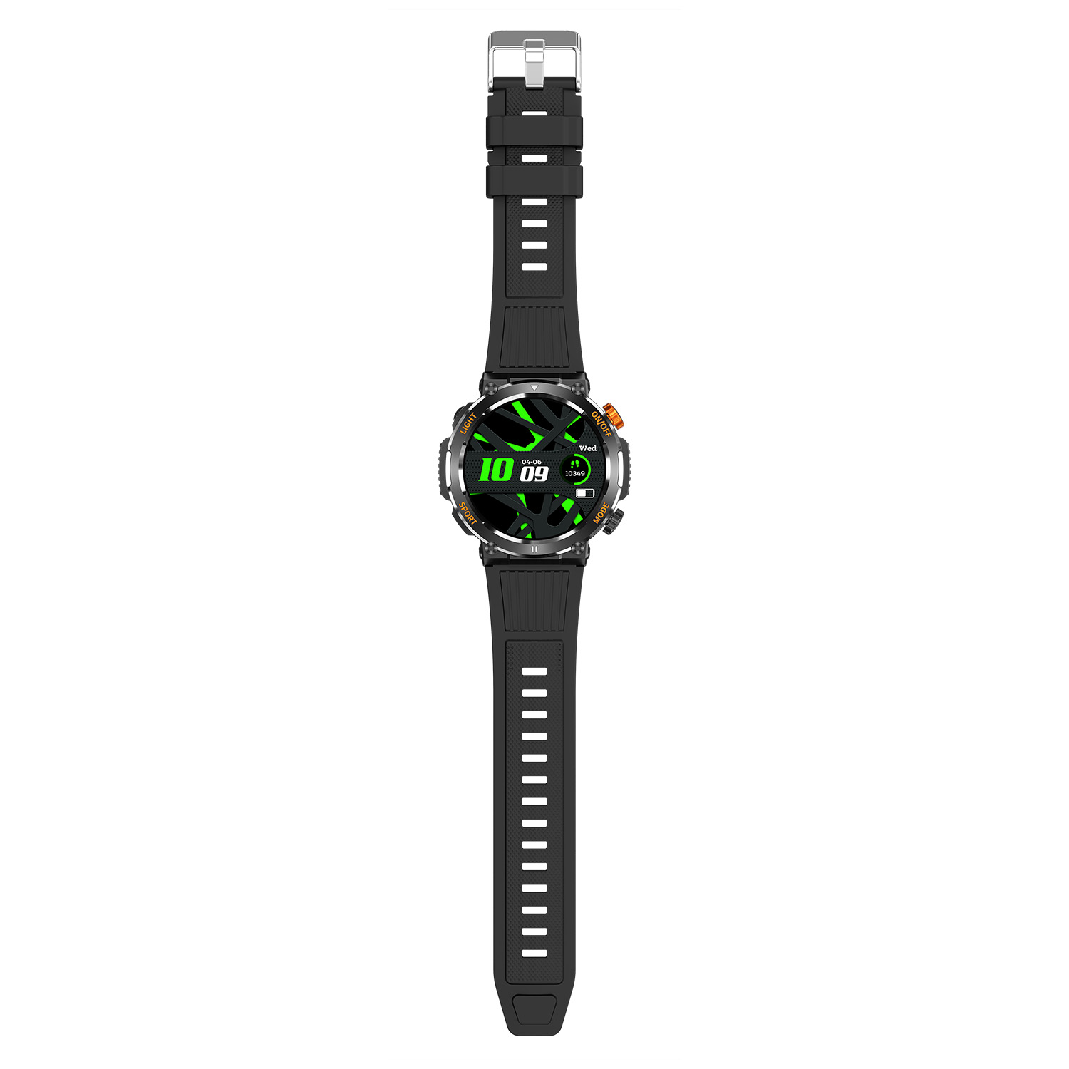 Dit Smarty Smartwatch horloge met nr: SW077A is een stap in de toekomst. De zwarte kast is gemaakt van metaal met een gehard glas. Aan de kast zit een zwarte siliconen band met een gespsluiting. Het ronde horloge heeft een afmeting van 48mm en is spatwaterdicht. In de rand van de kast vallen de rode letters op, evenals de rode drukknop. Deze smartwatch is sportief, stijlvol, maar zeker gebruiksvriendelijk. Om door apps, berichten en tekst te bladeren hoeft je alleen maar op het glas te tikken of de knop te gebruiken.