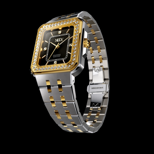 De Mila® is krachtig en stijlvol. Dit horloge combineert een zwarte wijzerplaat met een bicolor band van goud- en zilverkleurig staal. De rand van de kast is bezet met fonkelende zirkonia, wat een vleugje glamour toevoegt aan het strakke design. De afwisseling van gepolijst en gematteerd roestvrij staal maakt dit model veelzijdig en modern.