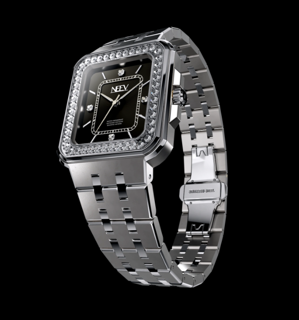 De Nora® Sparkle Silver Black is krachtig en stijlvol. De zwarte wijzerplaat contrasteert prachtig met de zilverkleurige kast, rijkelijk bezet met zirkonia’s. De stalen band combineert gematteerde en gepolijste schakels voor een moderne uitstraling. Met saffierglas en 5 ATM waterbestendigheid is dit horloge net zo duurzaam als verfijnd.