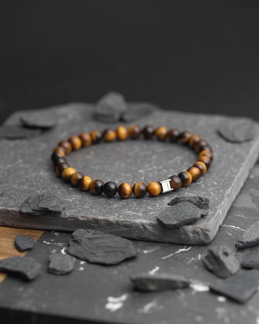 De Gemini 6mm Tiger Eye herenarmband bestaat uit hoogwaardige, kleinere Tiger Eye kralen. Deze stenen armband zorgt voor een stijlvolle maar edgy look die je outfit naar een nieuw niveau tilt. U kunt een Gemini Gemini stenen armband gemakkelijk herkennen aan het roestvrijstalen Gemini logo. De Gem-serie bestaat uit 12 verschillende kleuren. De natuursteen Tiger Eye - uit Zuid-Afrika - is een variant op kwarts en staat bekend om zijn intense gouden en bruine kleurlagen. Het is een bloedversterker, die de kracht en vitaliteit verbetert. - Maat L = 21 cm