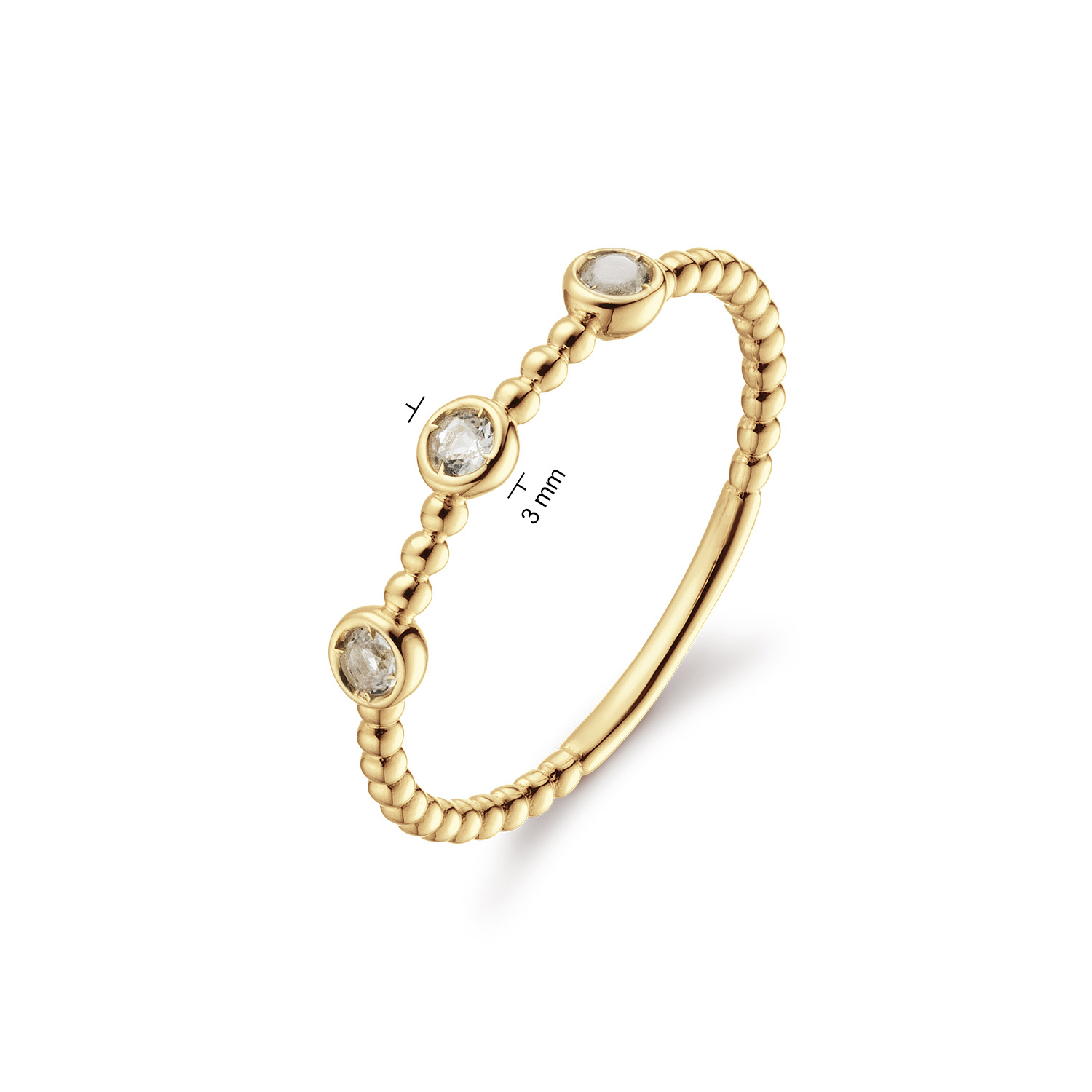 De 14 karaat gouden Triple White Topaz ring bevat 3 witte topaas edelstenen. Combineer de ring met de Dangling White Topaz ring en maak de perfecte ringstack!