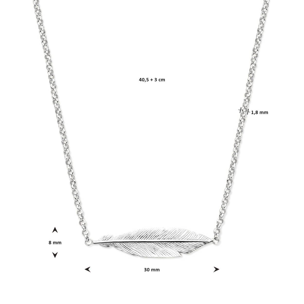 Gerhodineerd zilveren collier met een veer. Het collier is onderdeel van een set en de lengte bedraagt 40.5cm met 3cm extensie. De schakelbreedte bedraagt 1.8mm.